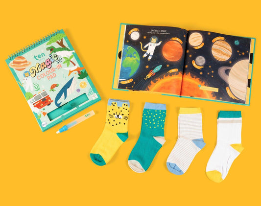 Take those little feet on big adventures with this fun, interactive bundle. Accompany Spot the Cheetah as he explores new worlds and uncovers the power of his imagination. SAVE on every bundle which includes:• Our organic cotton Classic Crew Socks (4-pack)• Our interactive children’s book: The Magical Adventures of Spot the Cheetah • Our...