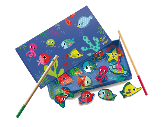 Ready, set, fish! Take turns catching colorful magnetic fish while honing your little one's concentration, coordination, and dexterity skills. Each set includes 12 colorful fish and two magnetic fishing rods.