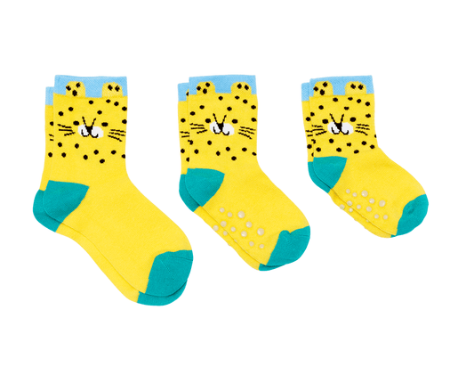 Bring Spot the Cheetah along for all of life’s big adventures with our playful quartet! Made with OEKO-TEX certified organic cotton for a breathable, lightweight feel for kids who like to play all day, our Everyday Crew Socks fit in shoes easily and come with distinct heel and toe colors...