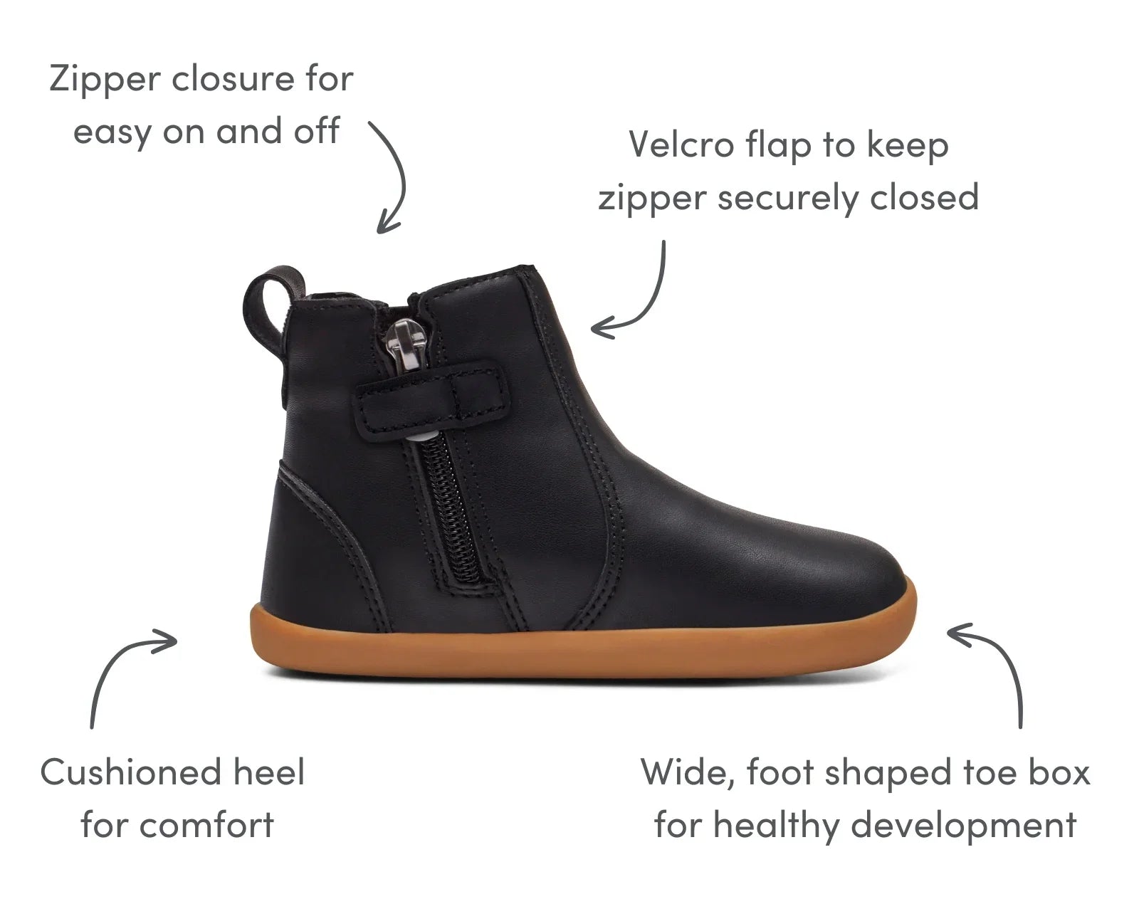 Approved by APMA, our timeless Chelsea Boots combine function and style in a boot that’s designed to support healthy development with every step. Crafted with our signature barefoot friendly fit, our PETA-approved vegan leather boots feature wide, foot-shaped toe boxes and flat, flexible soles to support natural movement and healthy growth. Cushioned heel cups keep every step comfy, and the side zipper makes slipping them on and off a breeze.