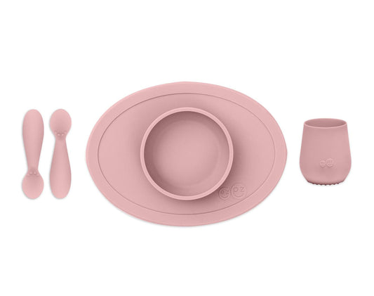 Introduce your baby to self-feeding with the First Foods set from ezpz. Complete with a silicone mat and attached tiny bowl that suctions to the table, a soft, easy-grip open cup, and two tiny spoons, the First Foods set has everything your little one needs as you introduce new foods.