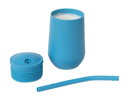 Soft and comfortable for little hands and mouths, the ezpz Mini Cup and Straw teaches toddlers to drink from an open cup and safely learn to use a straw. A weighted base and non-slip silicone work to prevent spills as your baby develops their fine motor skills. The soft straw...