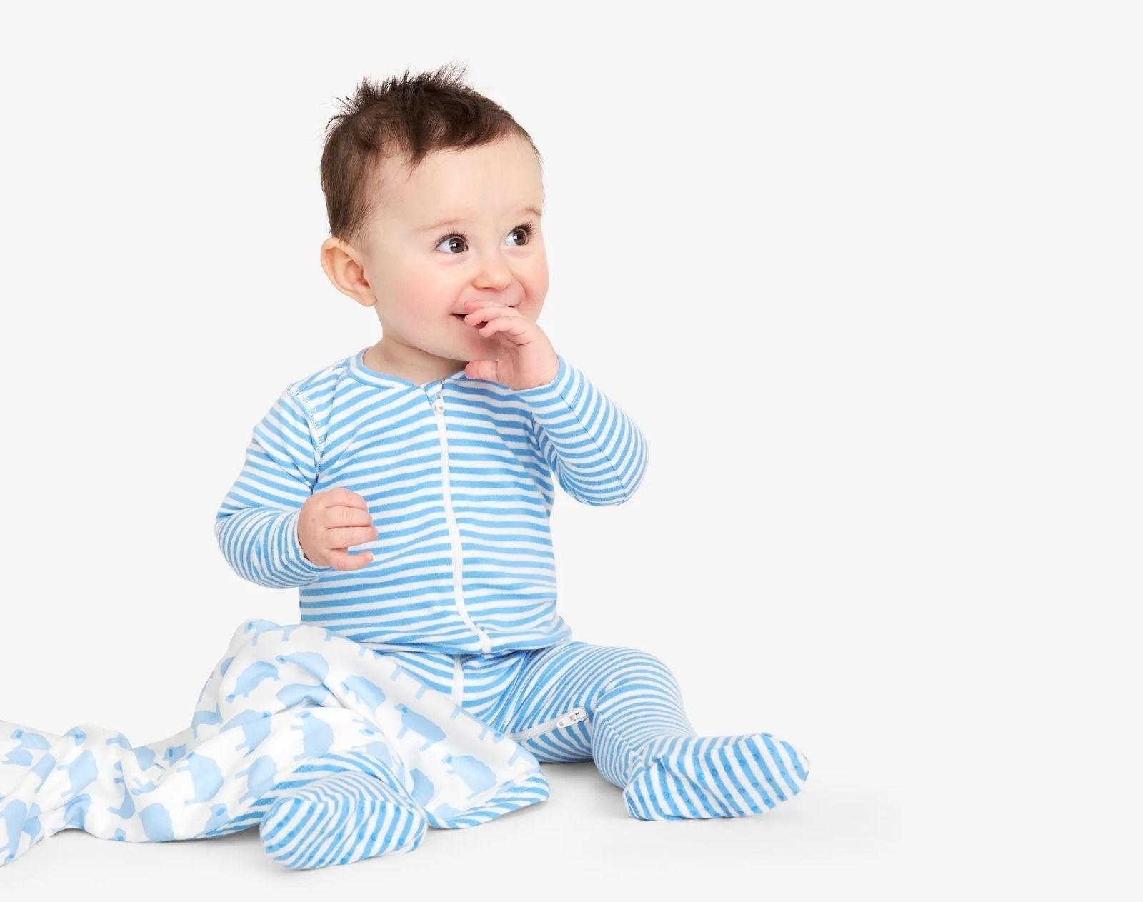 Your little one will love this 2-pack of Baby Onesie PJs, featuring one onesie with a playful pattern and one onesie with a timeless stripe pattern! Made from 100% GOTS certified organic cotton interlock and pre-washed to minimize shrinkage, these cloud-like PJs are incredibly soft, naturally stretchy, and kind on the skin! The thoughtfully designed PJ onesies also feature: