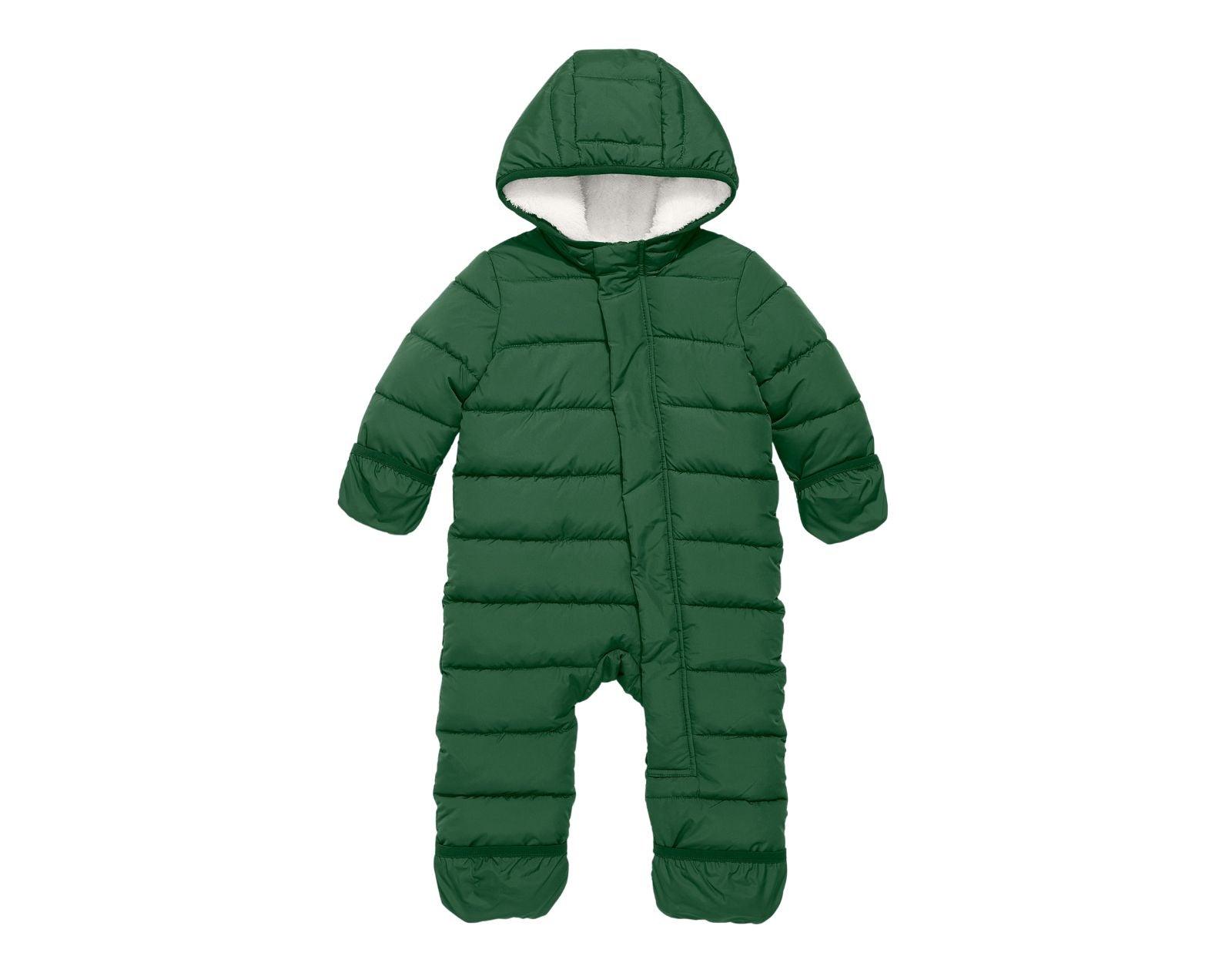 A go-to for cold weather, this Baby Parka Puffer Suit is made to last through many wears, washes, and winters! This cozy puffer suit is made from 100% recycled polyester, ideal for wind and rain, and has a teddy fleece lined hood, ensuring softness, comfort, and warmth without being too bulky! The puffer suit is layer-friendly and includes an inner "I belong to" label for quick identification, a full-body zip for easy on-and-off, foldover mittens, and foldover feet on sizes 3-6 and 6-12!