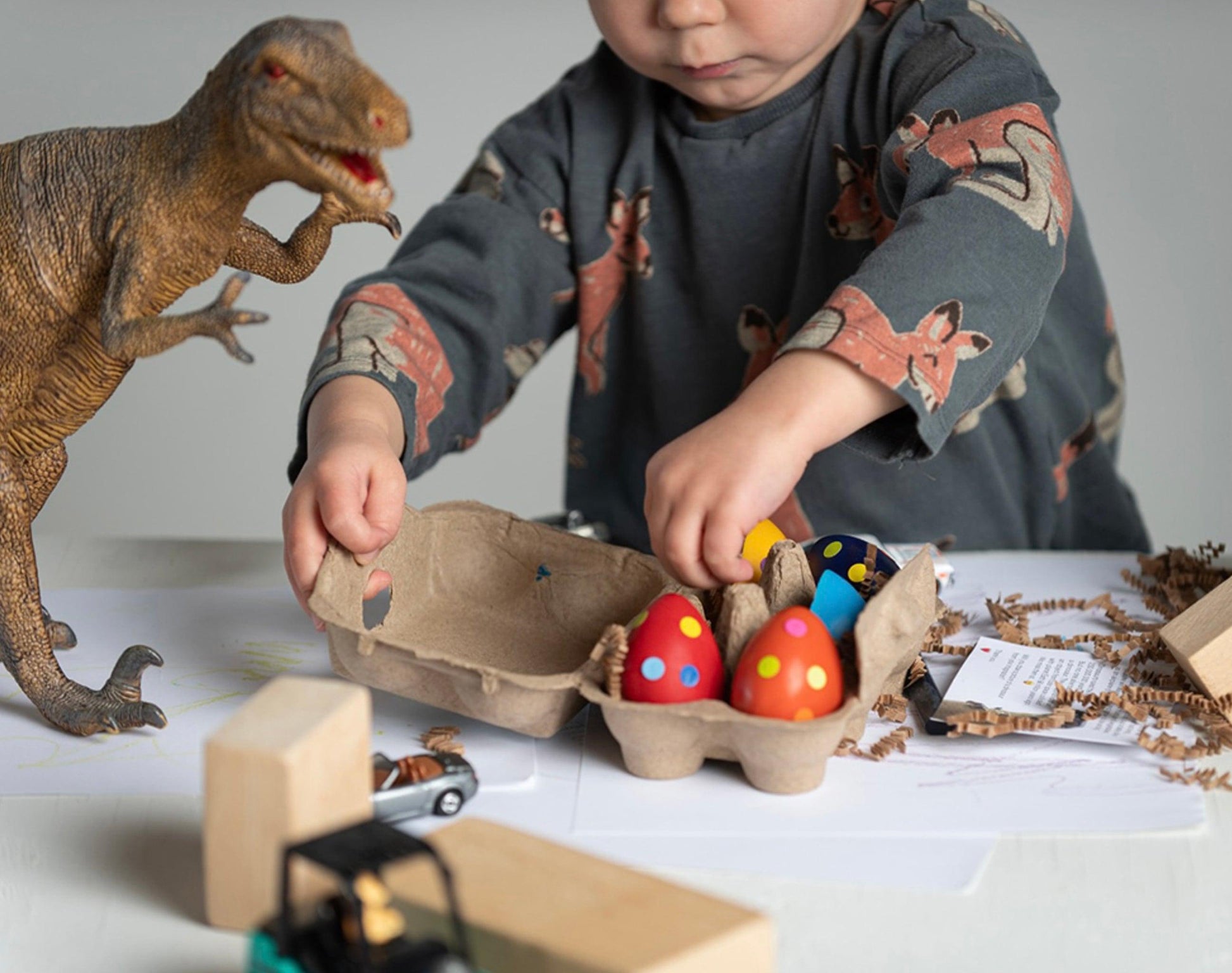 Although dinosaurs disappeared from Earth 66 million years ago, these Dino Eggs Beeswax Crayons are a colorful fantasy and will be sure to stimulate the imagination of your young artists! The set includes six vividly colored egg-shaped crayons packaged in a post-consumer recycled egg carton.