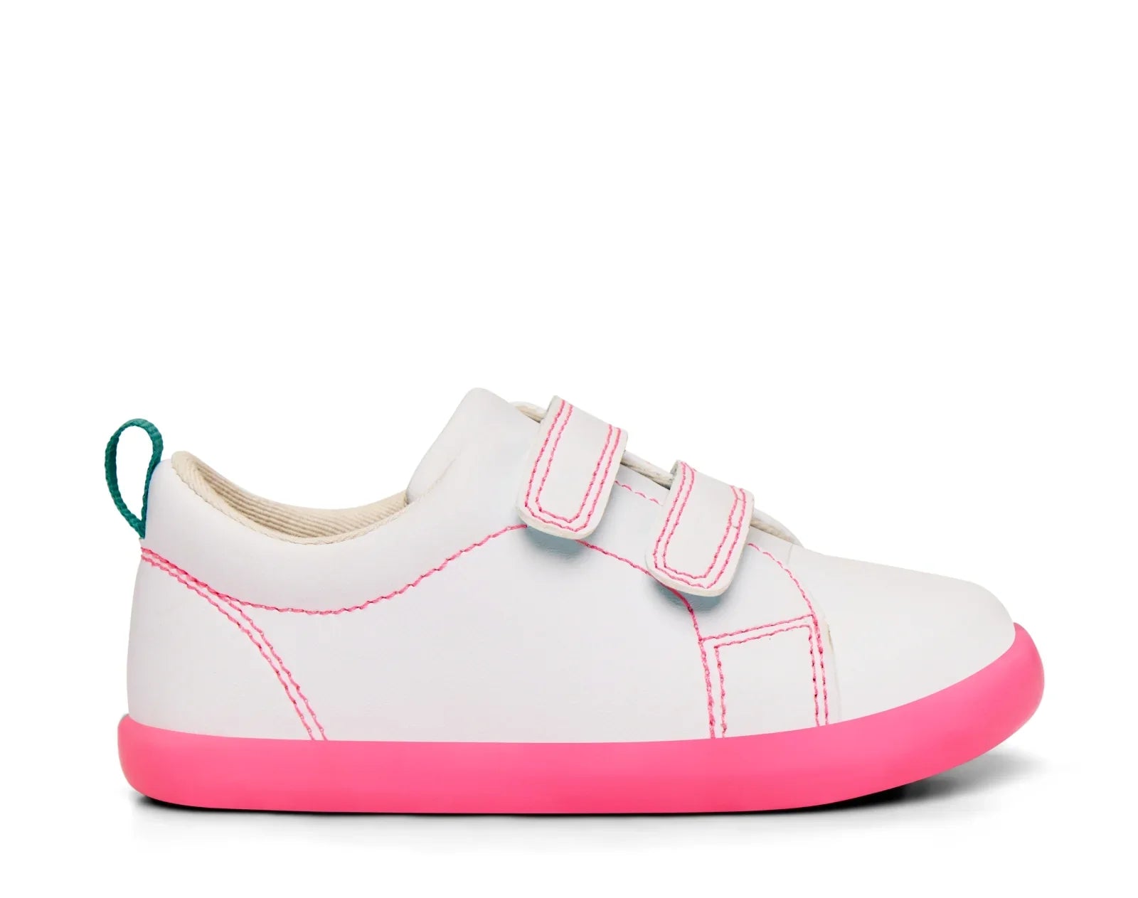 Approved by APMA, our statement-making Everyday Originals in Neon Glow bring a bright and bold pop of color to a sneaker that’s designed to support healthy development with every step. Available in new and brighter eye-catching neon colors that stand out from playground to pavement, they are crafted with our signature barefoot friendly fit and feature wide, foot-shaped toe boxes as well as flat, flexible soles to support natural movement and healthy growth. The PETA-approved vegan leather upper and reinforced toe caps are built for durability, making them perfect for everyday adventures.