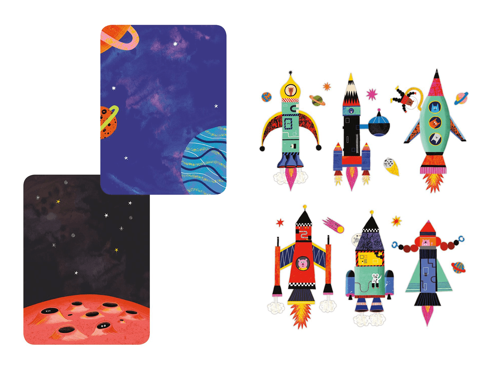 Mudpuppy's Rocket Ships Magnetic Build-it includes two illustrated scenes and three sheets of mix and match magnets to create your own galactic spacecraft. The sturdy tin package offers easy cleanup and storage for hours of imaginative play for your little one, making this the perfect children's travel toy or quiet time activity.