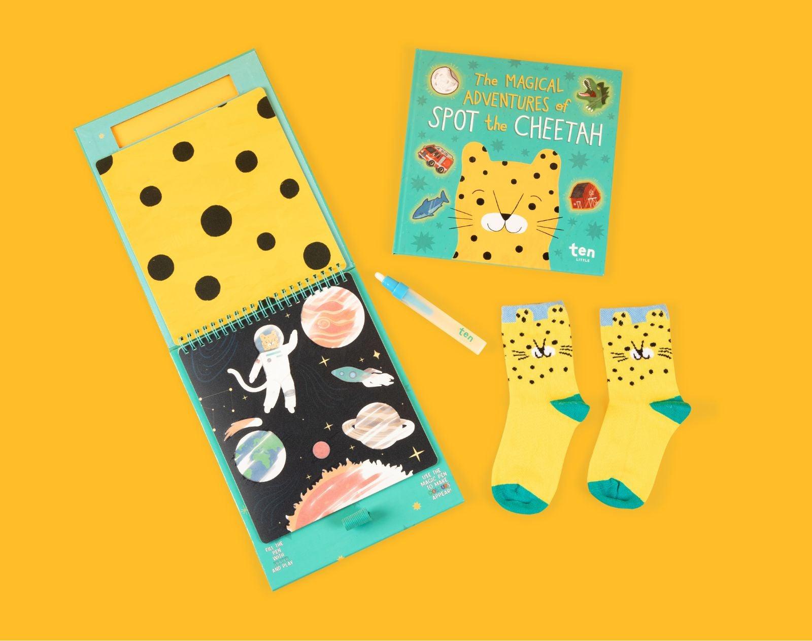 Take those little feet on big adventures with this fun, interactive bundle. Accompany Spot the Cheetah as he explores new worlds and uncovers the power of his imagination.