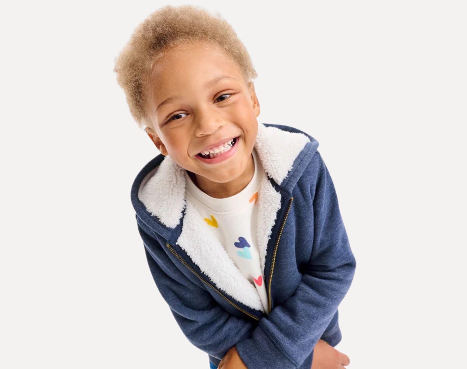 Your little one will love this Teddy Fleece-Lined Zip Hoodie, a cozy essential for colder days! Made from cotton and recycled polyester, and lined with teddy fleece in the hood and body, this hoodie is smooth on the outside yet fuzzy on the inside and offers softness and bulk-free warmth! The jacket comes in heathered yet vibrant colors, and features unlined sleeves for easy dressing, convenient side pockets, and an inner "I belong to" label for quick identification!