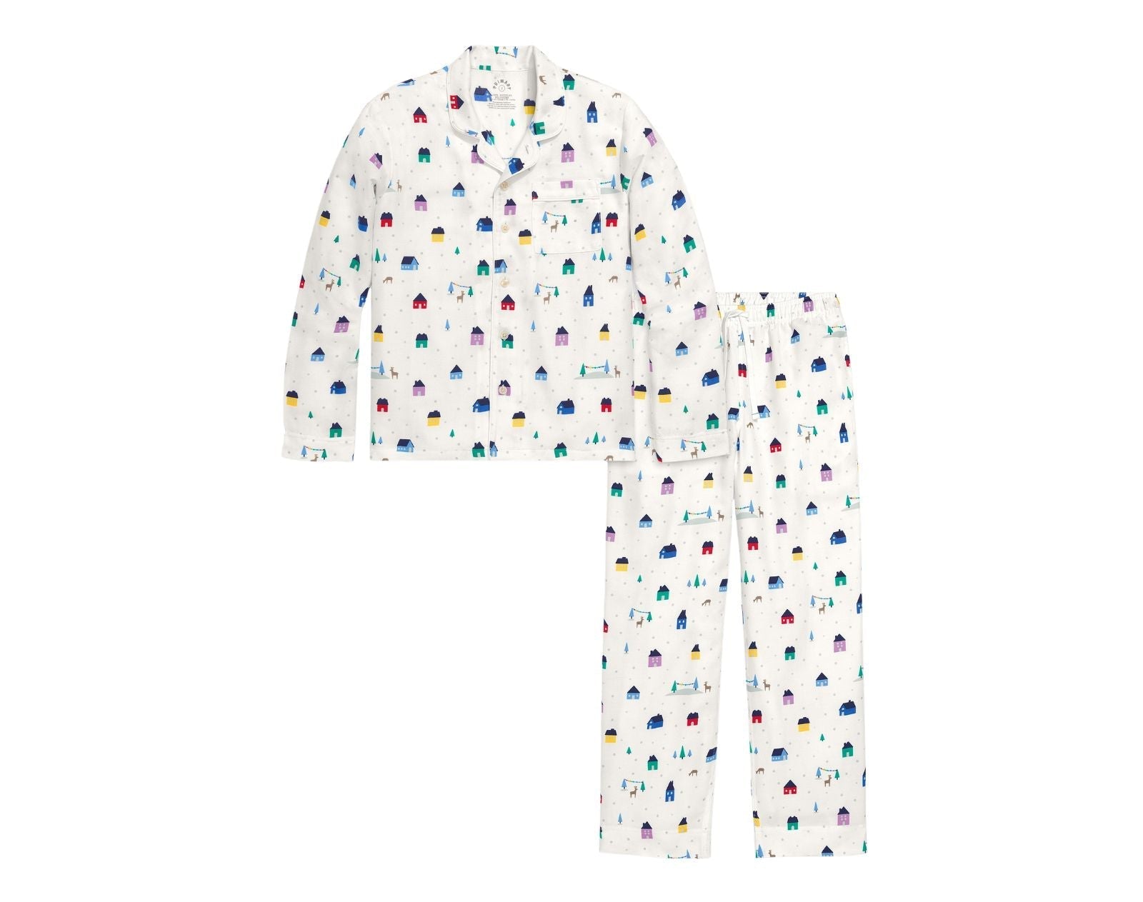 Create unforgettable holiday memories with this unisex Adult Holiday PJ Set, designed for matching with your little one! Made from 100% recycled polyester and featuring a rainbow winter village pattern, this PJ set includes a long sleeve button-down shirt and a pair of pants which are incredibly soft, plush, and brushed like they just came out of the dryer!