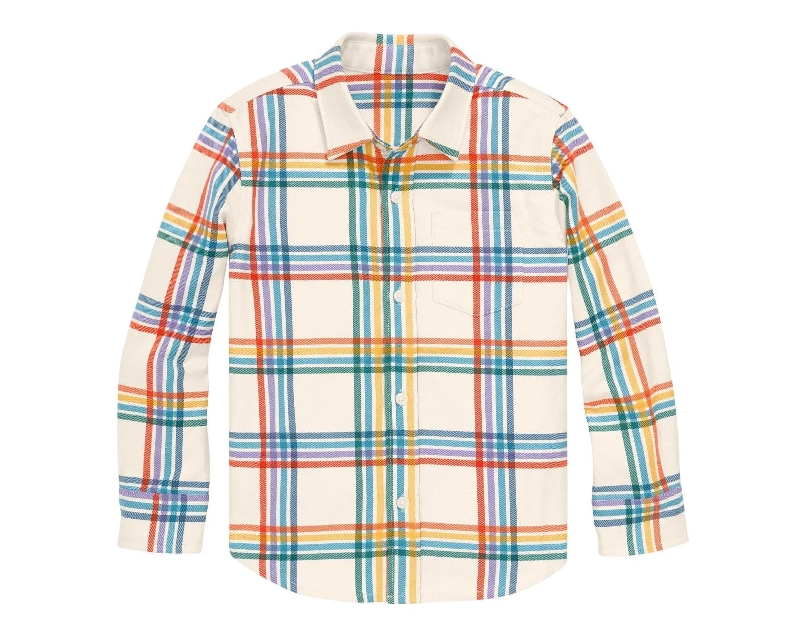 A go-to for fall, this Long Sleeve Button Down is perfect for layering! The rainbow flannel is crafted for comfort with 100% cotton, ensuring a super soft and cozy feel, like it just came out of the dryer! The button down is pre-washed to minimize shrinkage and features reinforced buttons and a front pocket for knick-knacks!