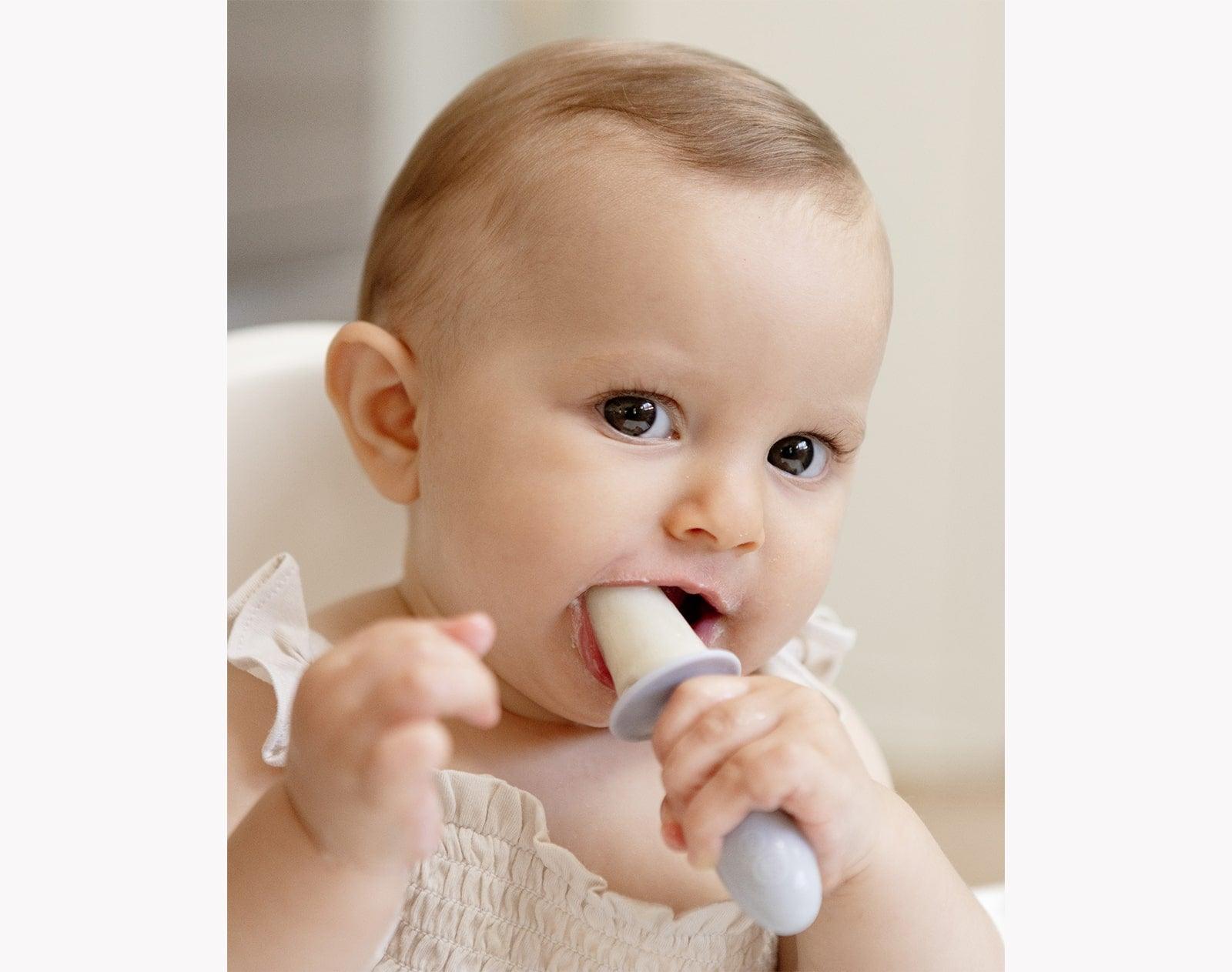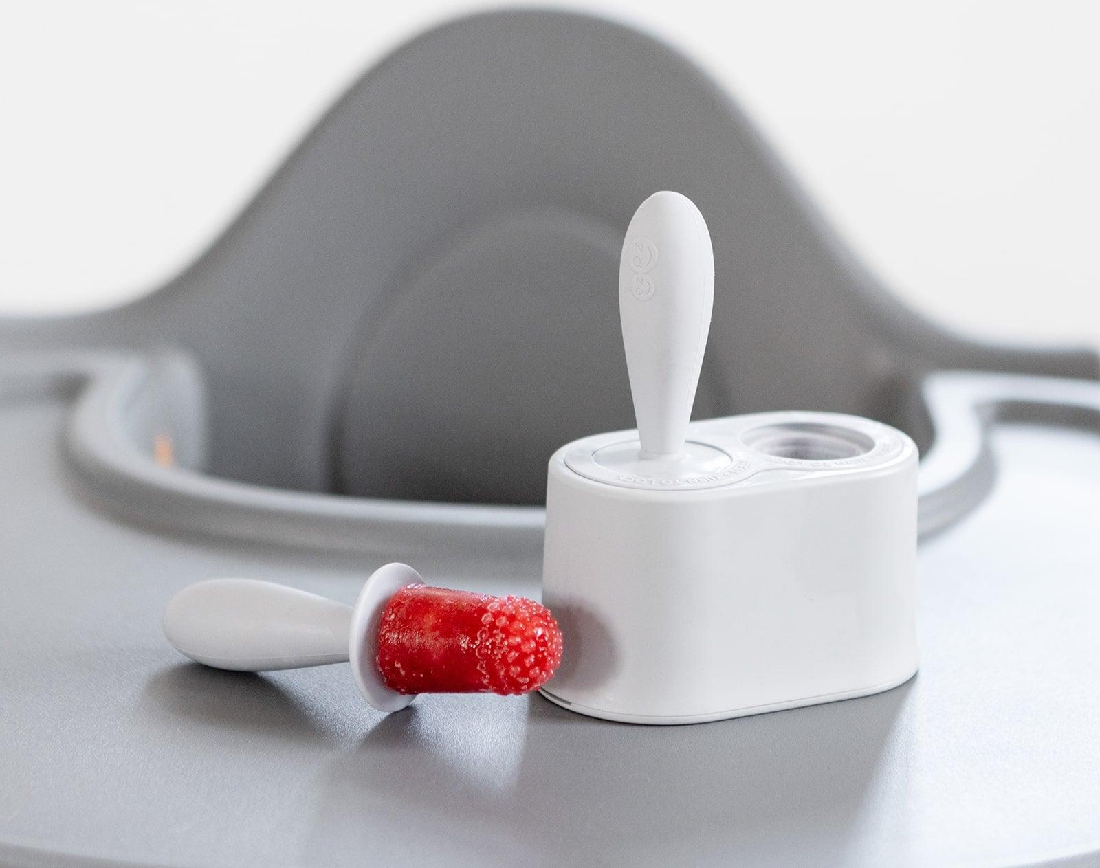Finally, a popsicle mold made for infants, perfectly sized for their little mouths! ezpz Tiny Pops are portion-sized at ½ oz and have a short, fat, round handle for baby’s grasp.