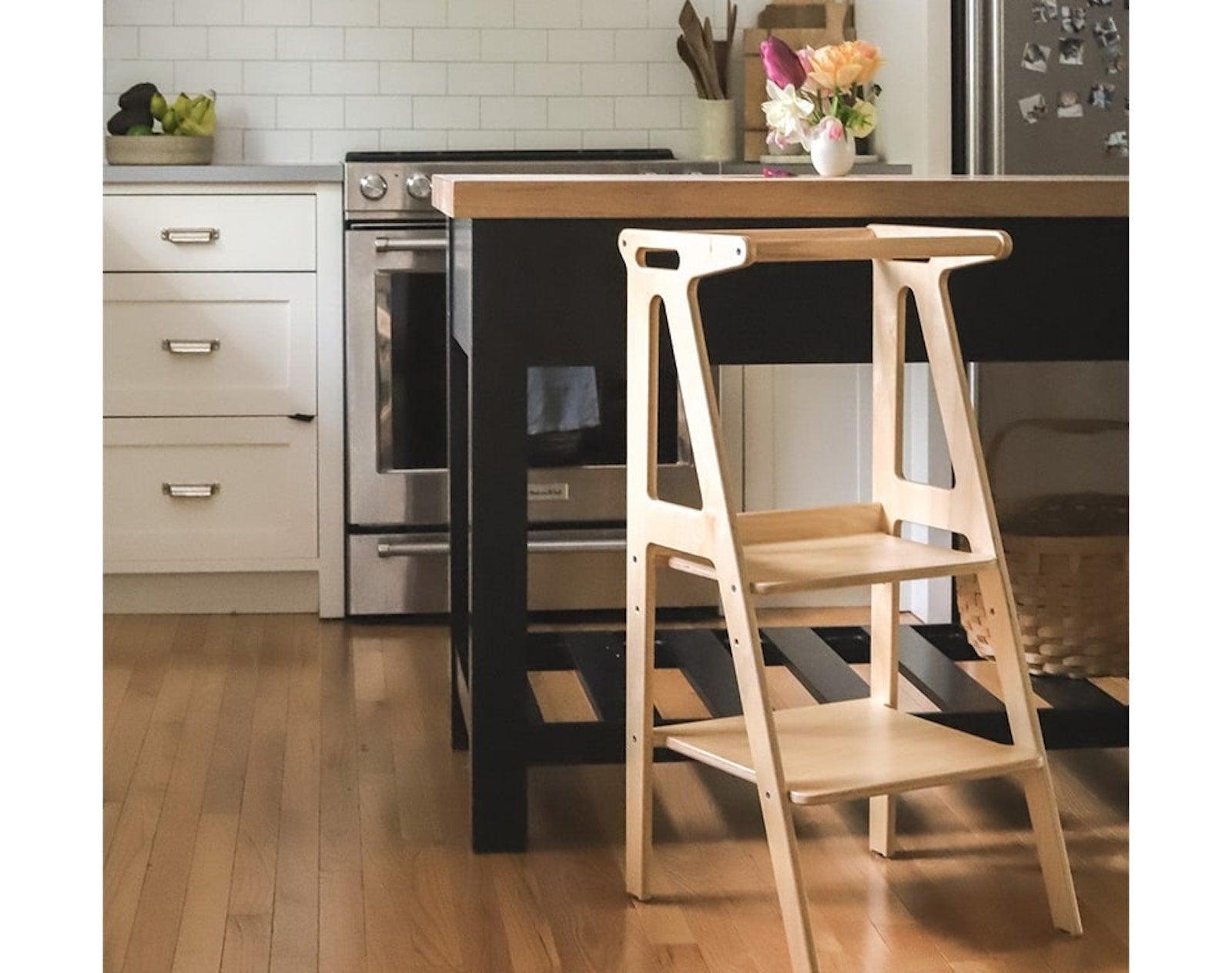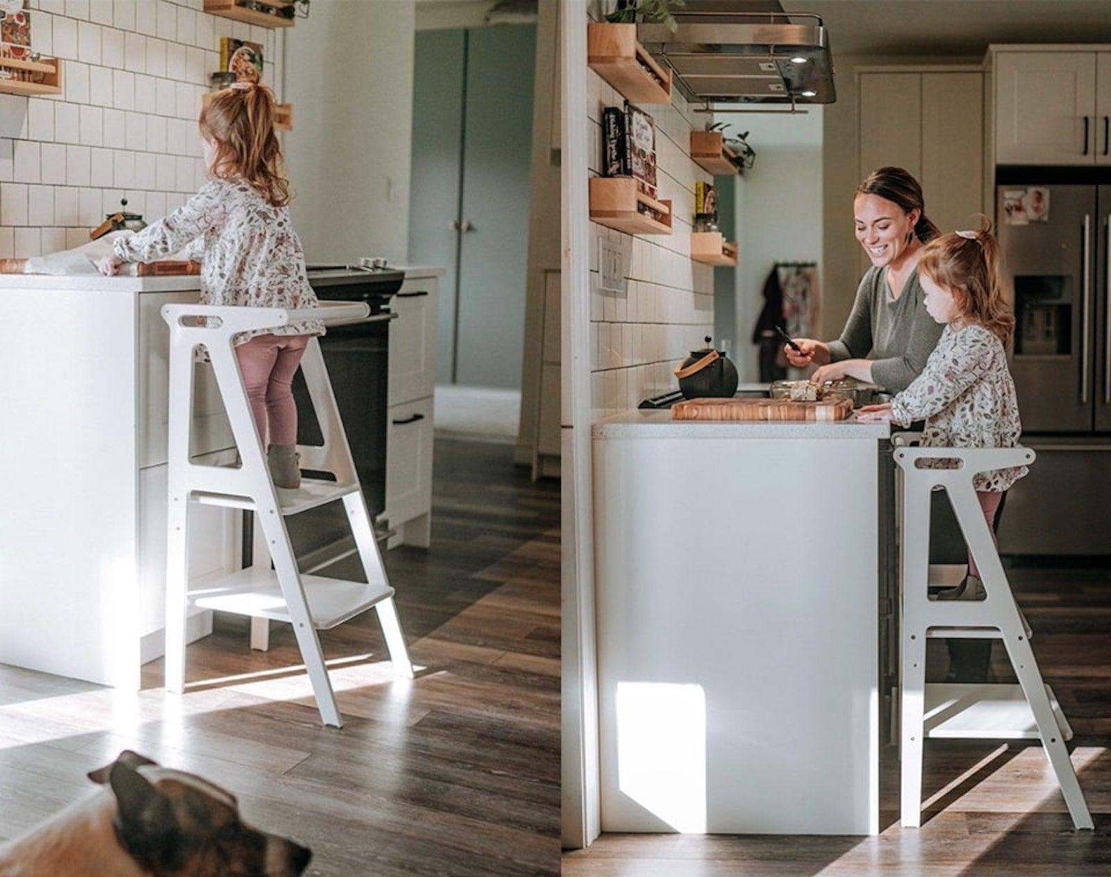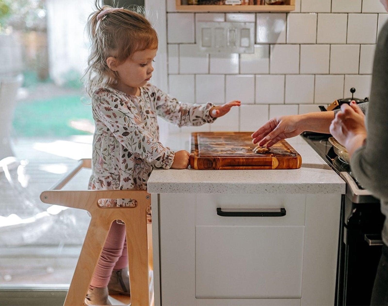 Help your child gain confidence in the kitchen and get up to where the action is with this lightweight and sturdy wooden Toddler Tower. The tower allows your curious little ones to climb up and down easily to join in on fun by helping out with cooking, grabbing items from the counter or just washing their hands at the sink. This handy tower is the perfect companion for any kitchen, featuring: