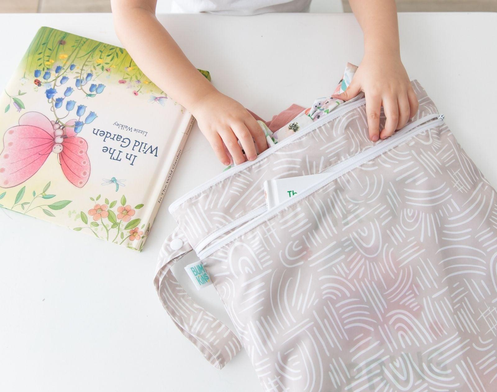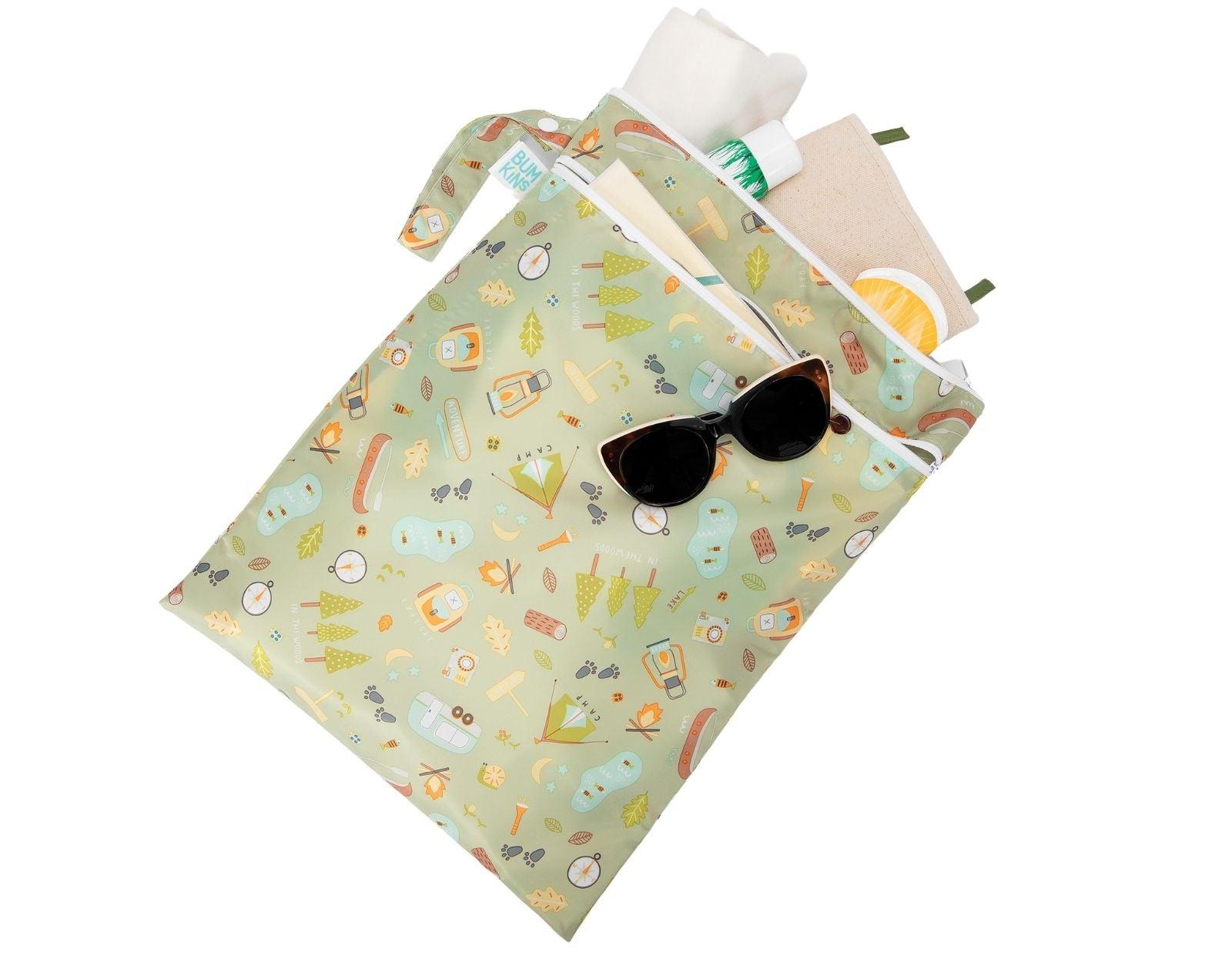 Carry this Wet/Dry Bag on your next trip to the beach or fun-filled family outing! Made from a waterproof, machine washable fabric, this boho-style bag is great for stashing things on-the-go, featuring two zippered compartments to keep wet and dry items separate, heat-sealed seams for waterproof protection and to help lock away odors, and a snap handle so you can attach it wherever you need it - a stroller, changing table or suitcase! This functional bag can be used to carry diapers, beach gear, or wet swimsuits and can also double as a chic organizer for toys, accessories and more. The possibilities are truly endless!